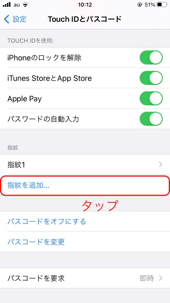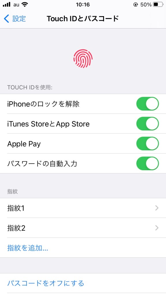 指紋を設定してパスワード認証を省力化