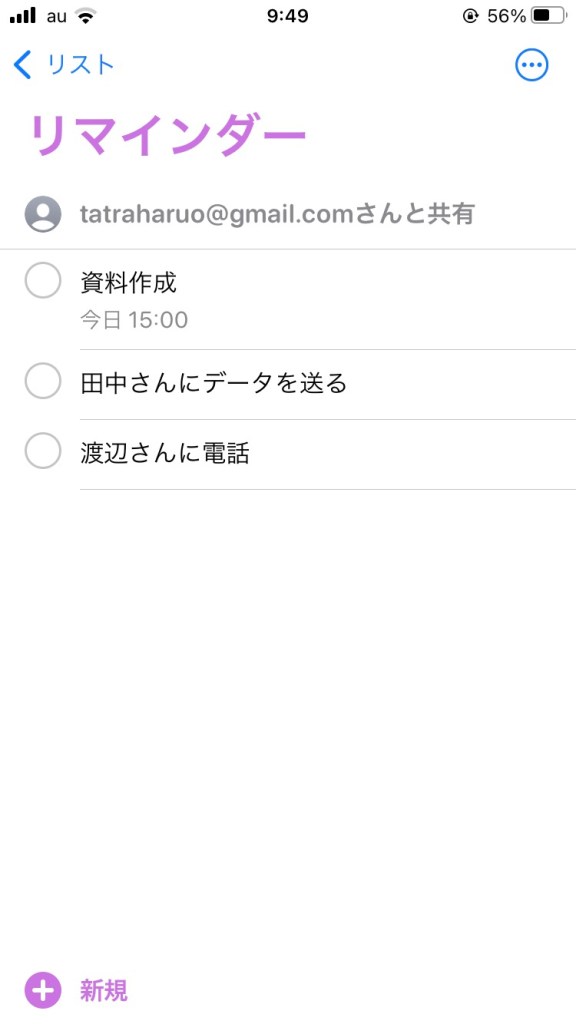 チームを組んで仕事をしていたり、部内の目標を設定していたりなど、複数の人とやるべきことを共有していることがあります。そうしたときは、リマインダーを共有します。共有したリマインダーには、参加したすべての人がやるべきことを登録でき、どの仕事が終わって、何が残っているのかを把握しながら、協力しあって業務を行えるというメリットも。リマインダーの共有は、残業を減らす手助けとなる便利な機能なのです。Androidでは無料アプリ「Tasks Free」の内容をメールで送信します。