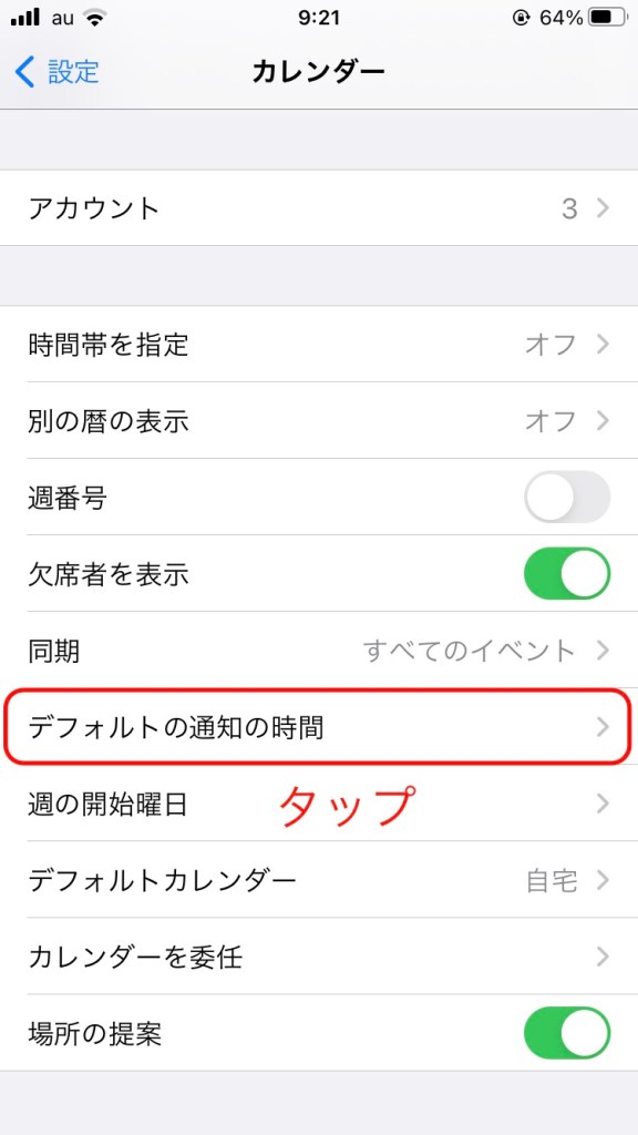 「カレンダー」の設定を開いて時間の指定を見直そう