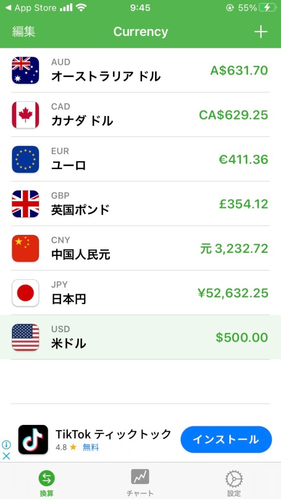 為替レートが変動しても、ほぼ正確に換算してくれる!